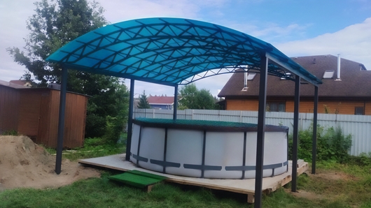 Навес арочный из голубого поликарбоната для зоны с бассейном Арт-670